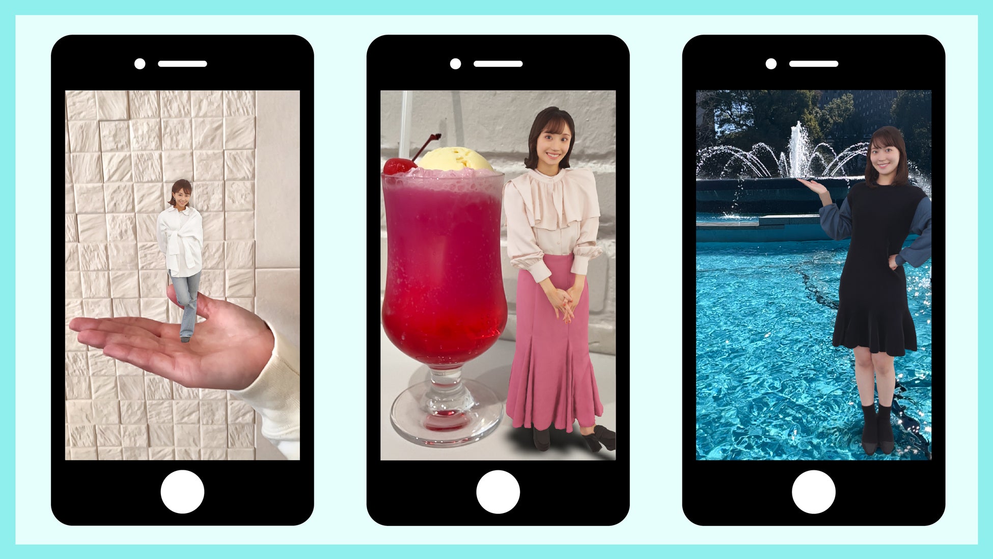 3Dフィギュアの大きさや角度を自由に変えて、AR撮影をすることが可能です。手の上にのせたり、お気に入りのものや風景と一緒にAR撮影をしてお楽しみいただけます。