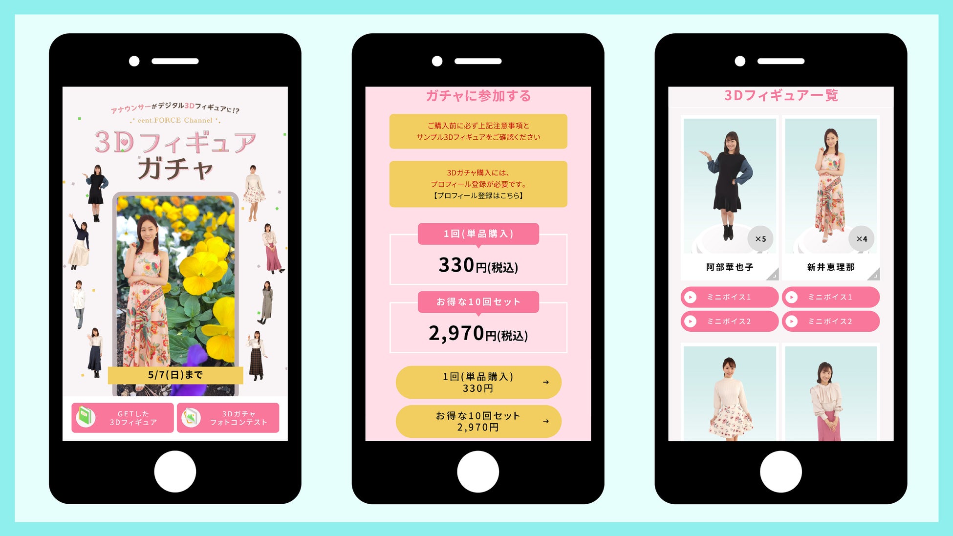 cent. Force所属アナウンサーの3Dフィギュアを利用したデジタルガチャが、本日3月23日(木)よりファンクラブ向けにサービス開始!