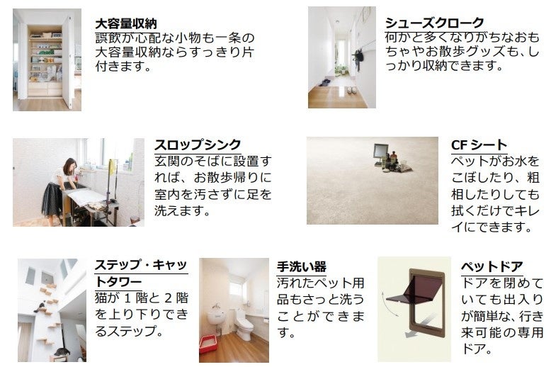 一条工務店ではペットも一年中快適に、安全に、健康的に暮らせる住宅性能やアイテムをご用意しています。