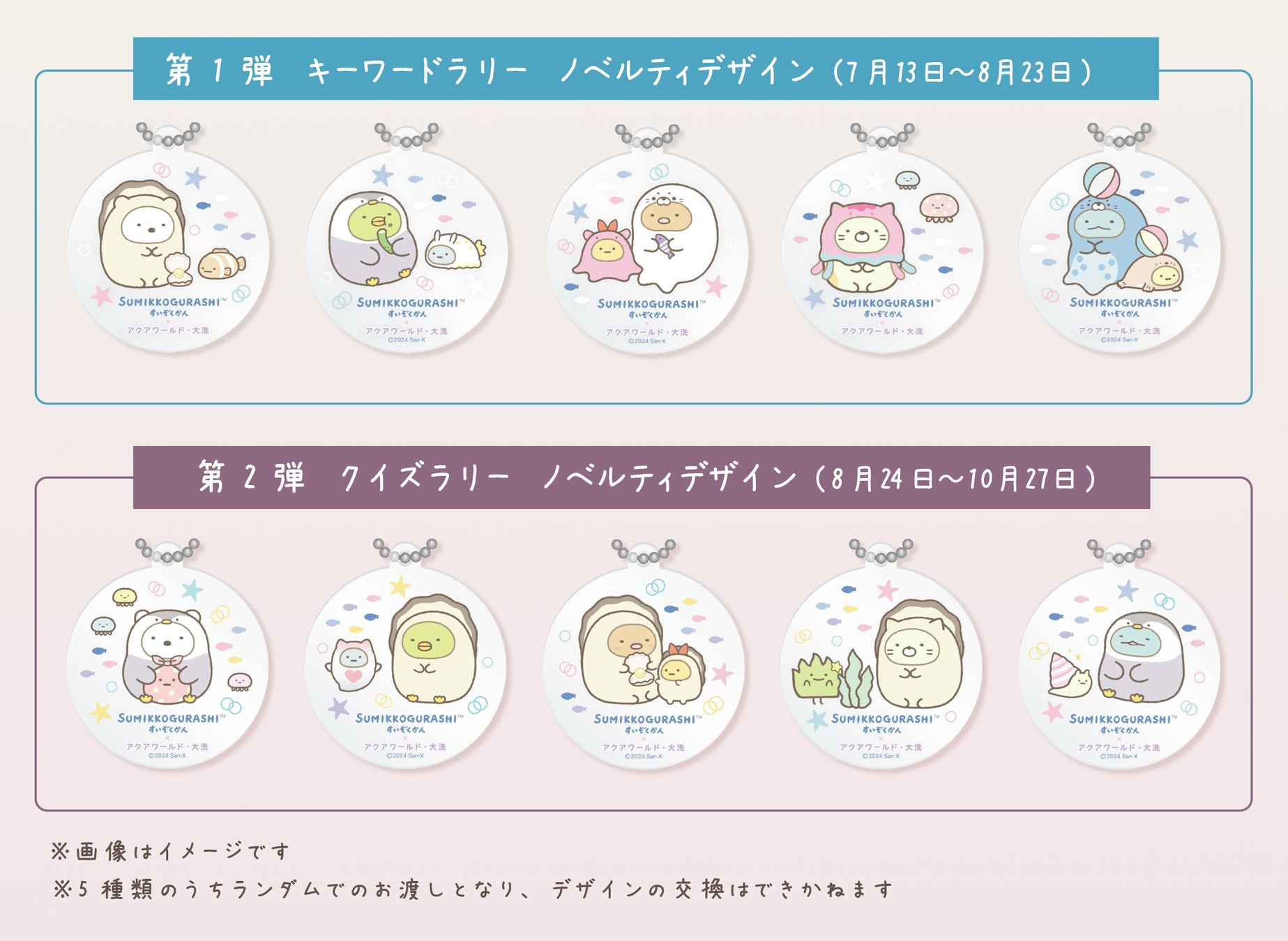 たくさんのお客さまにお楽しみいただいておりますラリープログラムは、イベント第2弾より、特別展示“海の世界の「すみっコ」スペシャルコーナー”内で展示する生き物たちにまつわるクイズラリーとなります。プログラムへ参加してくださったみなさまには限定ノベルティ『アクリルキーホルダー』(全5種)のうちランダムで1個プレゼントいたします。