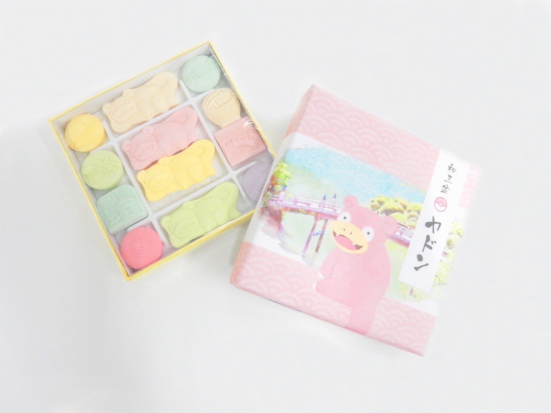 香川県特産の和三盆糖を使ったお菓子です。まるでヤドンのしっぽのように、優しい甘さが特徴です。ヤドンやモンスターボールなどを形どった食べるのがもったいないようなデザインになっています。