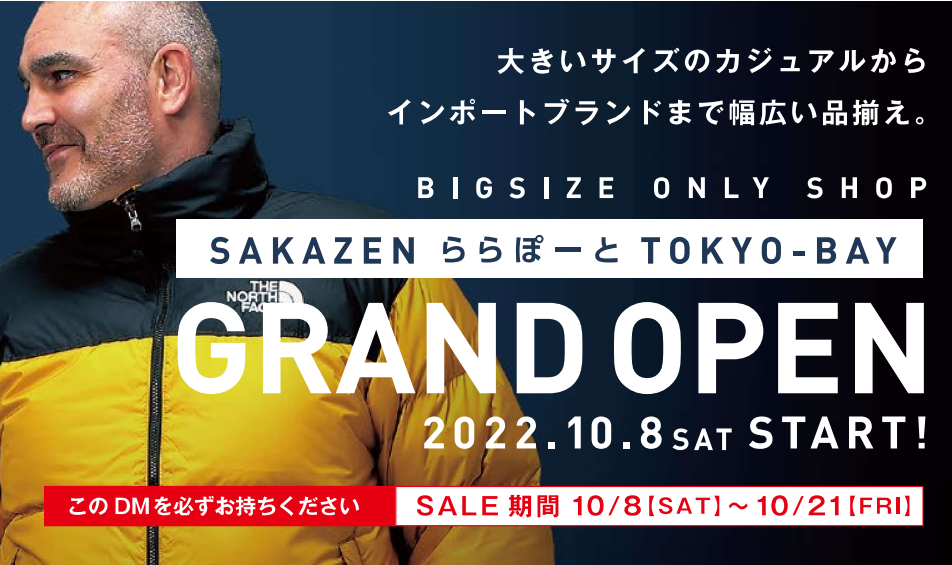 1956年創業。普通サイズ〜⼤きいサイズのカジュアルからビジネスまでのアパレル・⼩物を関東中⼼に約30店舗展開。 ヨーロッパから直接買い付けたインポート商品も幅広いサイズを取り扱っています。『#全ての⼈に楽しさと幸せを』を ミッションに、お客様と従業員に対して、常に楽しい「ワクワク」を提供し、社会全体に「シアワセ」を提供することを ⽬指しています。