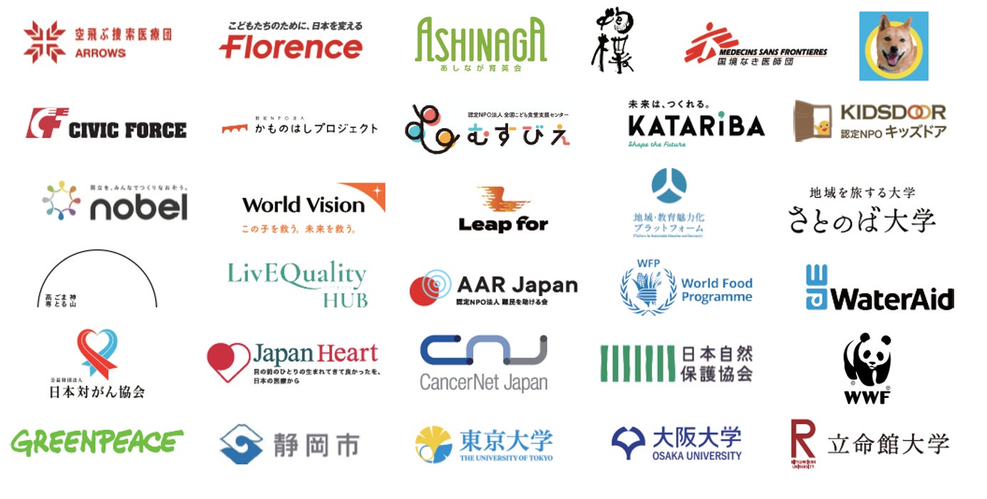「えんギフト」掲載寄付先団体(27団体、1自治体、3大学)