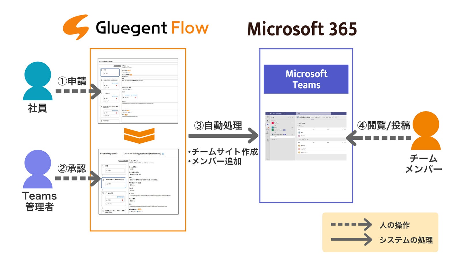 利用中のグループウェアがMicrosoft 365であるユーザー企業は、「Gluegent Flow」のBusinessプランまたはPremiumプランで追加費用等が発生することなく、すぐに利用できます。
