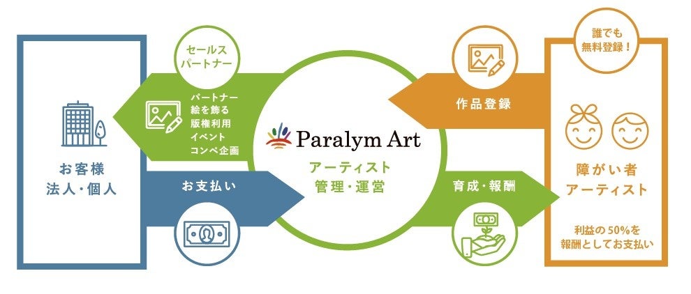 障がい者アーティストによるパラリンアート作品をNFT化し、障がい者の芸術表現そのものに興味を持って頂ける会社や個人への販売により、事業として、障がい者がある方々の社会参加と経済的自立の支援に取り組みます。