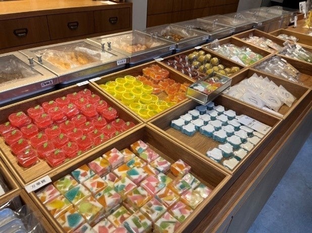 本格派の和菓子から昔懐かしい駄菓子まで、子どもから大人まで幅広く楽しめる商品が並ぶ。