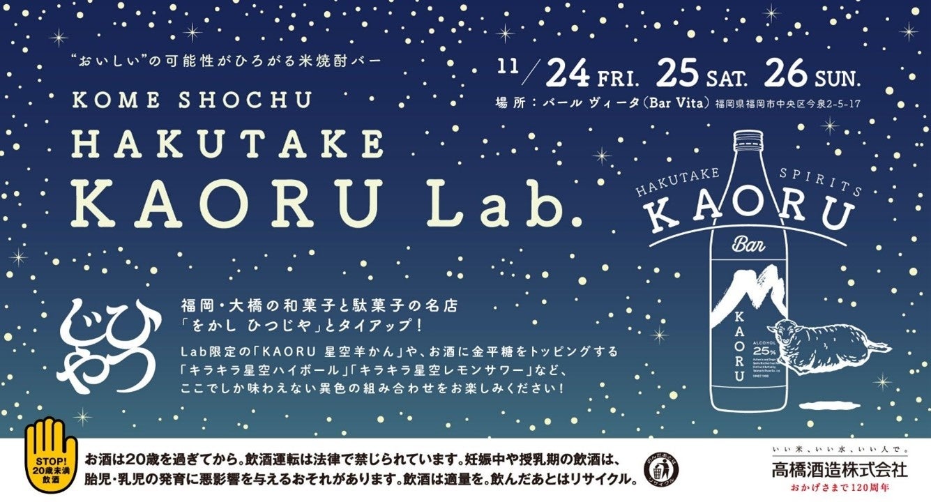 “おいしい”の可能性がひろがる米焼酎バー「HAKUTAKE KAORU Lab.」を福岡・今泉(国体道路沿い)に期間限定オープン