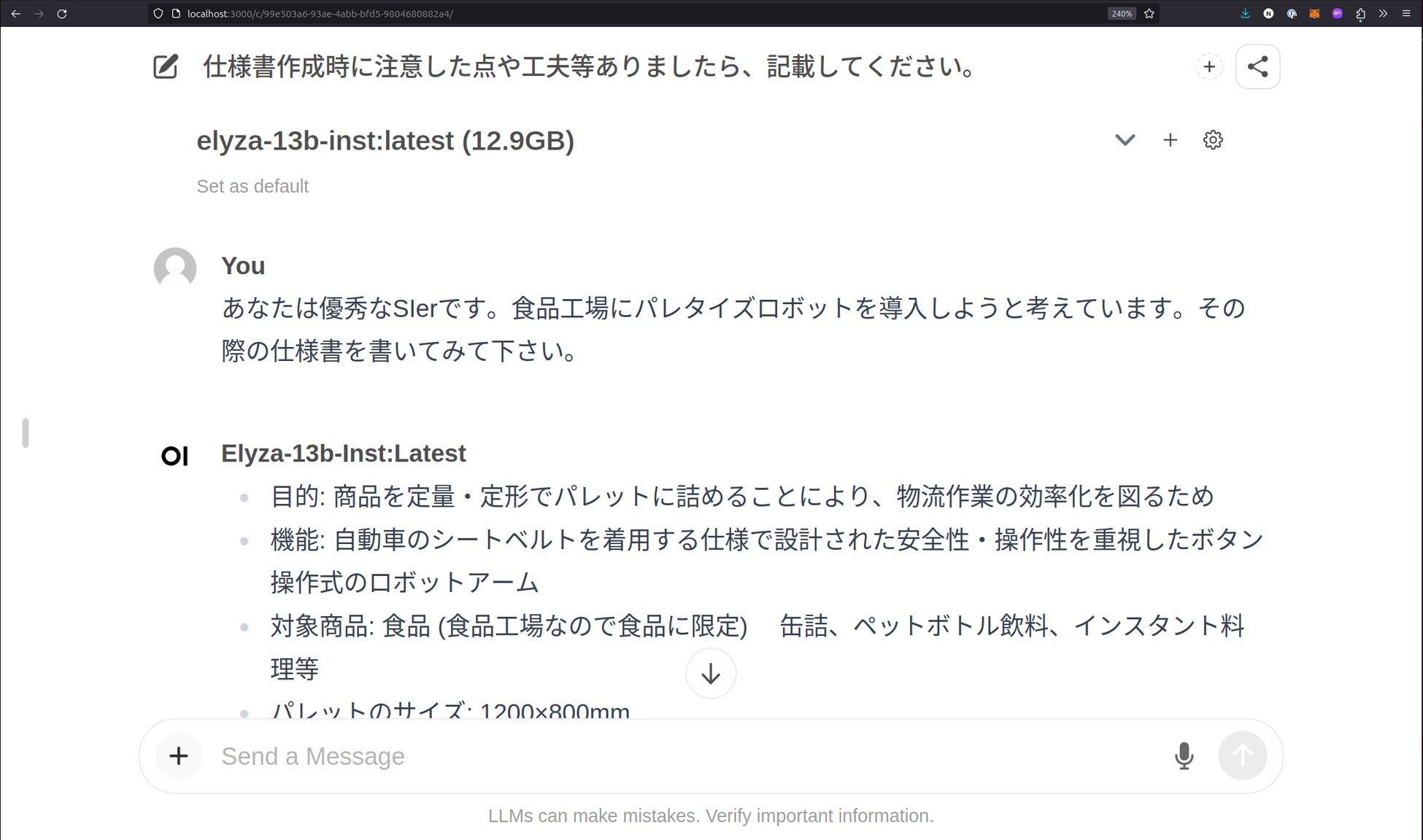弊社では、このローカルLLMが製造業をはじめとするセキュリティが厳しい環境、インターネット接続できない環境での業務改善に大きく貢献できる技術だと考えています。