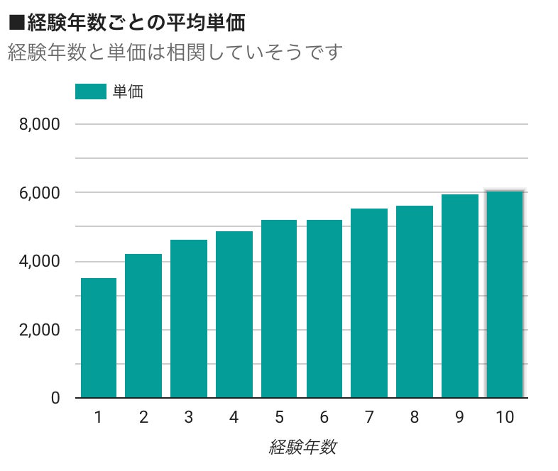 経験年数が増えるにつれて、平均単価も上昇する傾向にあります。