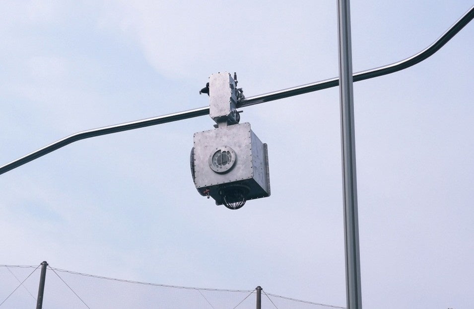 このロボットの設計に当たっては、緊急時においても確実に現場の状況を点検できるように、製造設備上方に設置した軽量なレールに吊り下げて稼働させることの可能な移動式の機構を採用しました。加工や敷設のしやすさの経済性を考慮して、パイプ形状のステンレス製レールを用いた設計としています。化学プラントで要求される防爆性を満足しつつ、小型さや軽量さを考慮した設計としています。センサは、可視光カメラ、サーモカメラ、マイクを搭載しています。(※2)