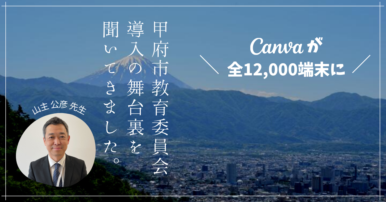 こうした反響を受け、6月末に市内の全端末12,000台にCanva for Educationの導入を完了された甲府市教育委員会の山主先生にお話を伺い、インタビュー記事を公開しました。