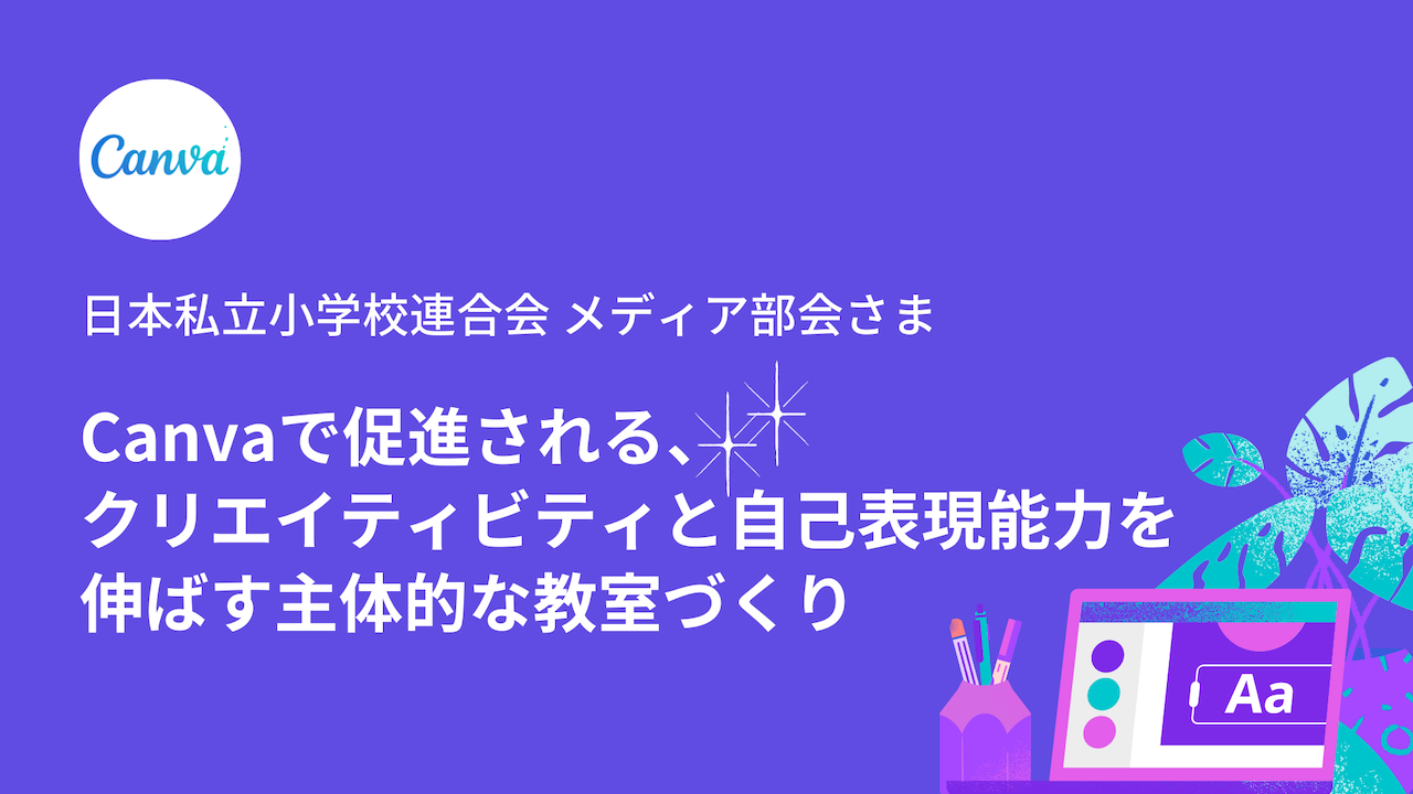 全国の私立小学校により結成され、教員の資質向上のために研修や研究事業を実施している日本私立小学校連合会のメディア部会に向けて、Canvaが研修を実施します。全国の私立小学校の先生方がCanvaをゼロから学び、ICTを活用して「主体的・創造的・協働的な学び」を現場で創出するためのスキルアップに励む勉強会です。