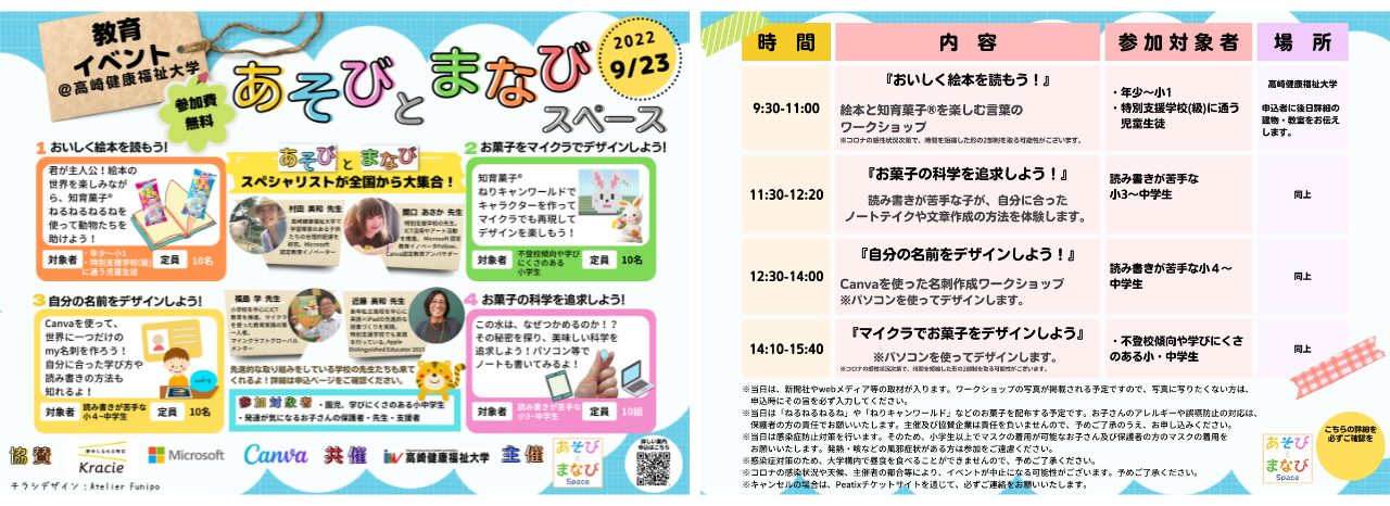 ■9月23日(金)群馬県高崎健康福祉大学「あそびとまなびスペース」