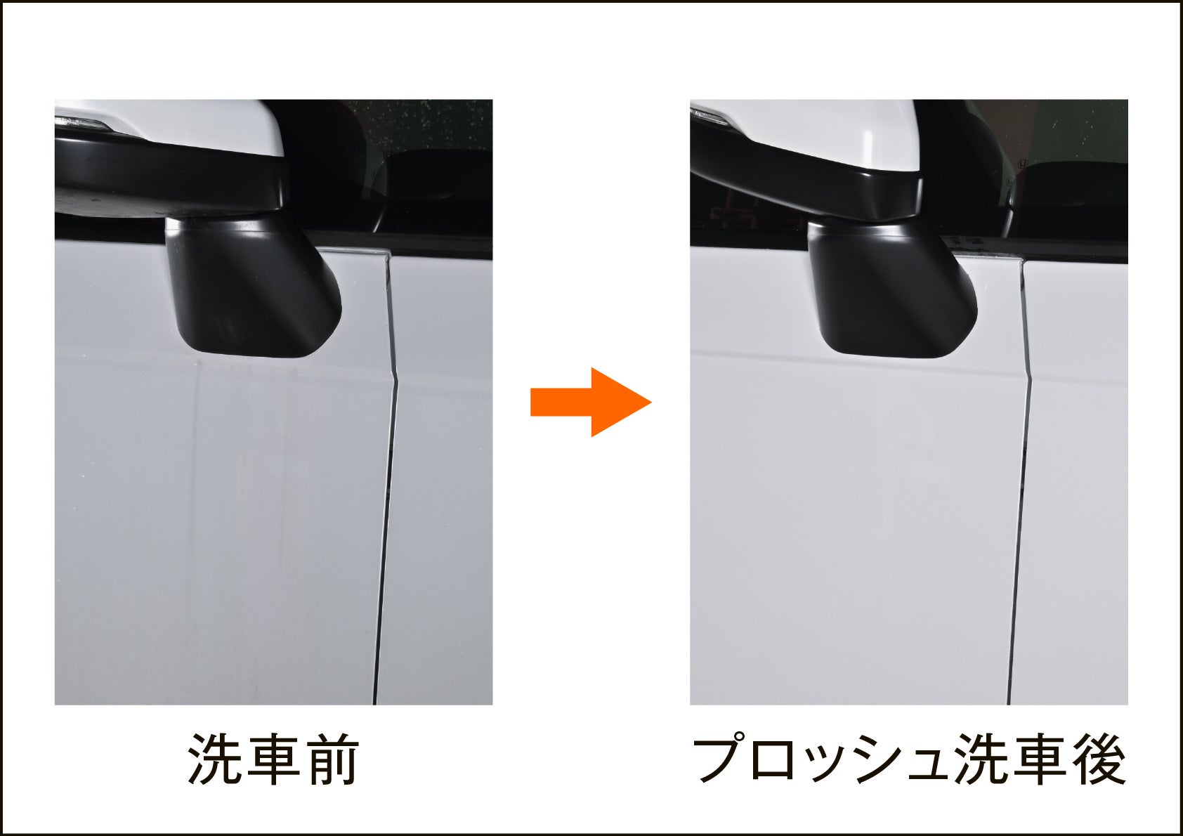 従来から好評をいただいているオプション「プロッシュ」は引き続き選択可能です。プロッシュは、車のボディにこびりついた水アカを、劣化したコーティング被膜ごと除去し車の素肌を整えることができるメニューです。次にかけるコーティング剤の品質を最大限に引き出せるため、車の輝きを保ちたい方におすすめです。
