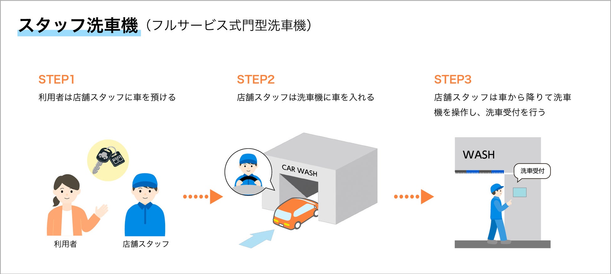 ※スタッフ洗車機:店舗スタッフが利用者の車と洗車機を操作して洗車を行う、フルサービス式の門型洗車機