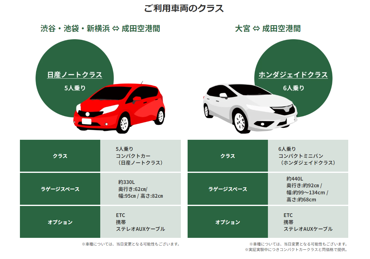 当路線では、より大人数での利用に応えるため、6人乗りのミニバンサイズをご利用いただけます。