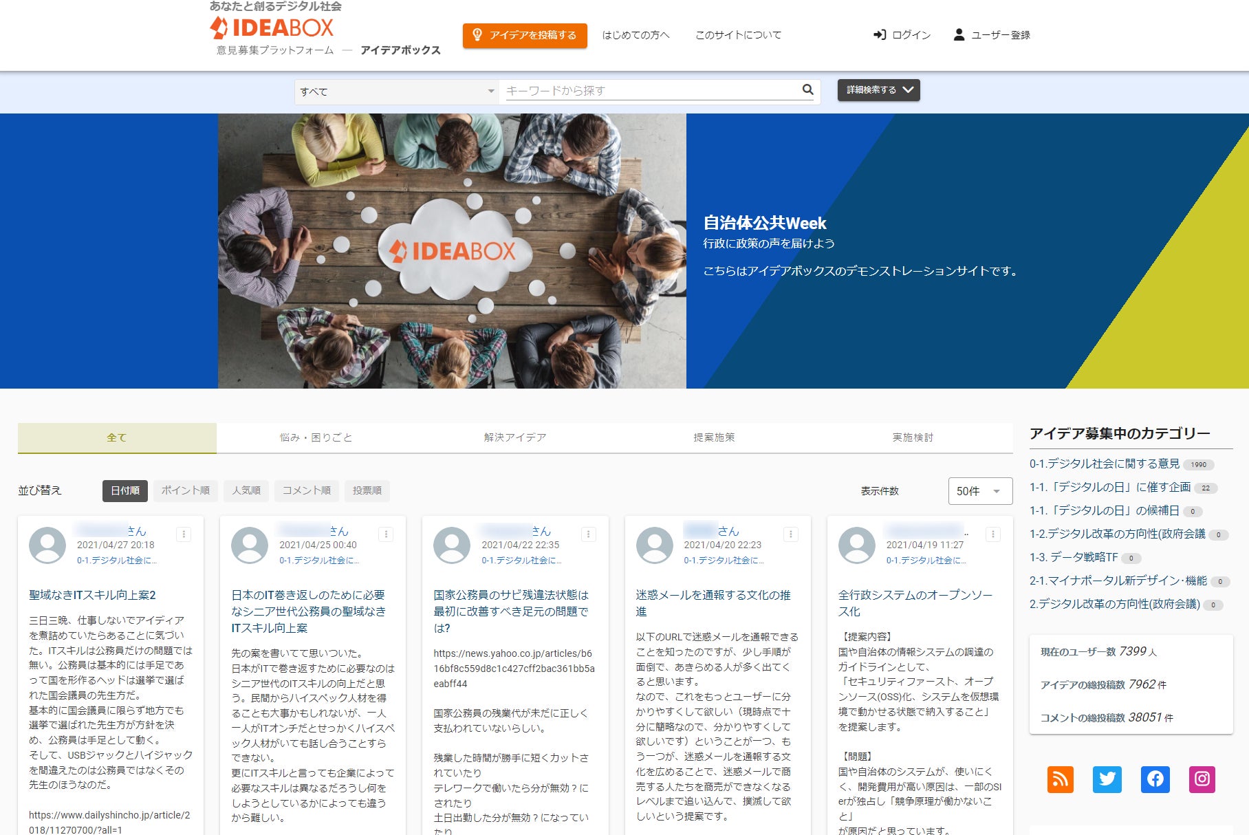 昨年1年間、デジタル庁にて平井卓也(初代デジタル大臣)のもと官民対話の先駆けとして採用されたアイデアボックスですが、今年1月、その運用実績を元に様々な団体に使って頂けるように全面的にリニューアルを行いました。元々官民対話目的で開発されたアイデアボックスですが、昨年12月より大手民間企業での運用を開始し、導入事例が続々と増えています。また4月よりデジタル庁様にご採用頂き、これで3年連続の採用になっており、引き続き採用事例が拡大しております。