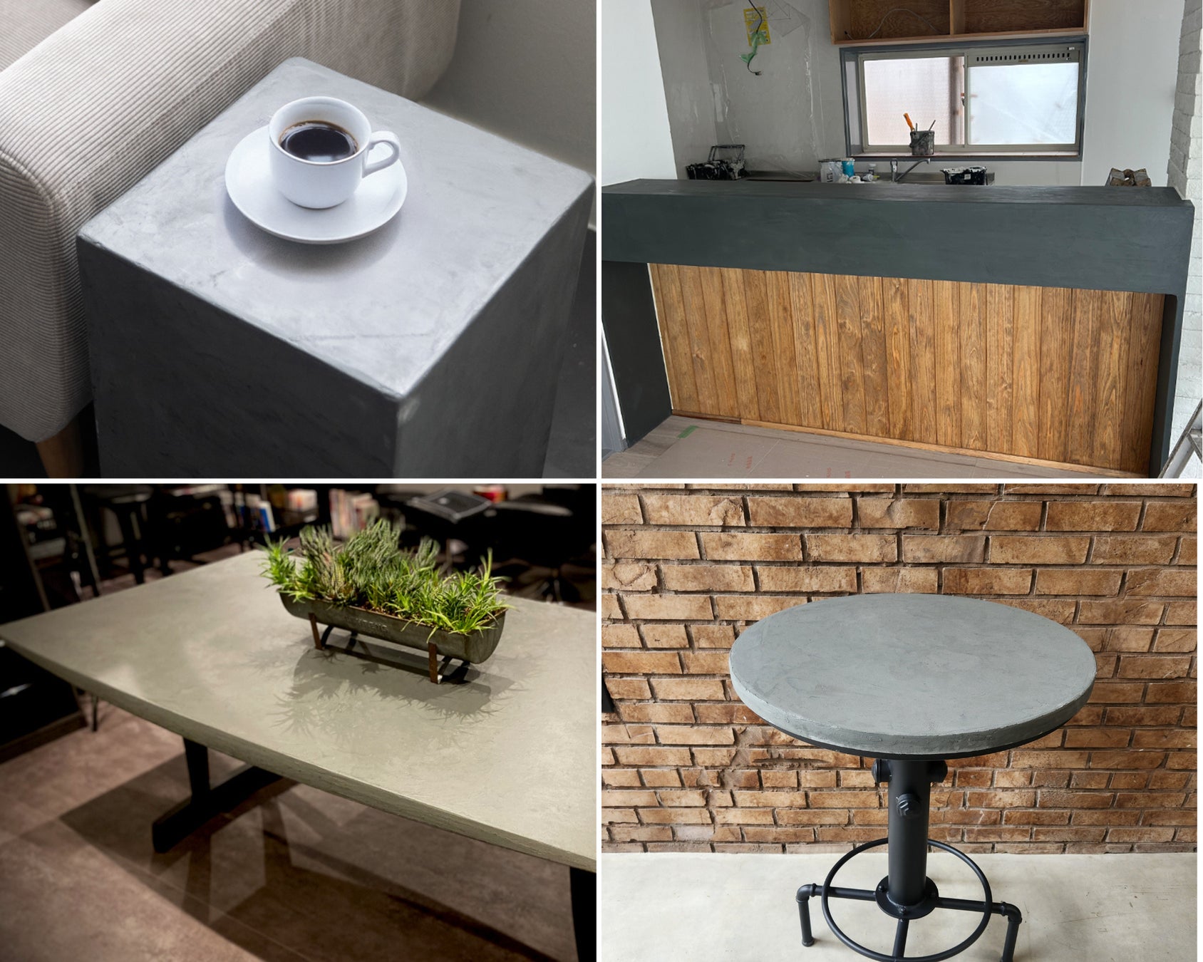 マイクロセメントは、樹脂を含んだモルタル系の左官材で、薄塗りでありながら丈夫で美しい仕上がりを実現できるのが特徴です。その高いデザイン性から、店舗什器や住宅の建具などさまざまなシーンで活用されています。