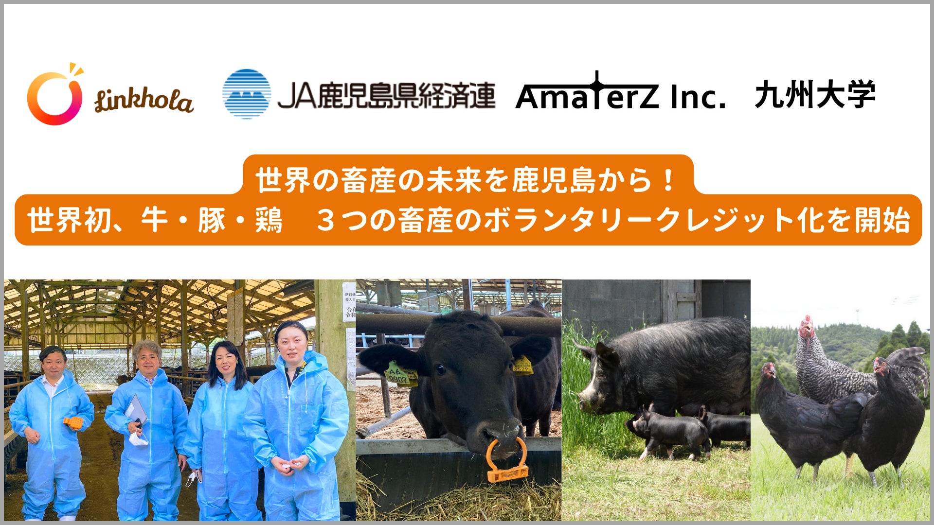 Linkhola、JA鹿児島県経済連、AmaterZら4者共同で世界初の「牛・豚・鶏 3つの畜産のボランタリーカーボンクレジット化」を開始