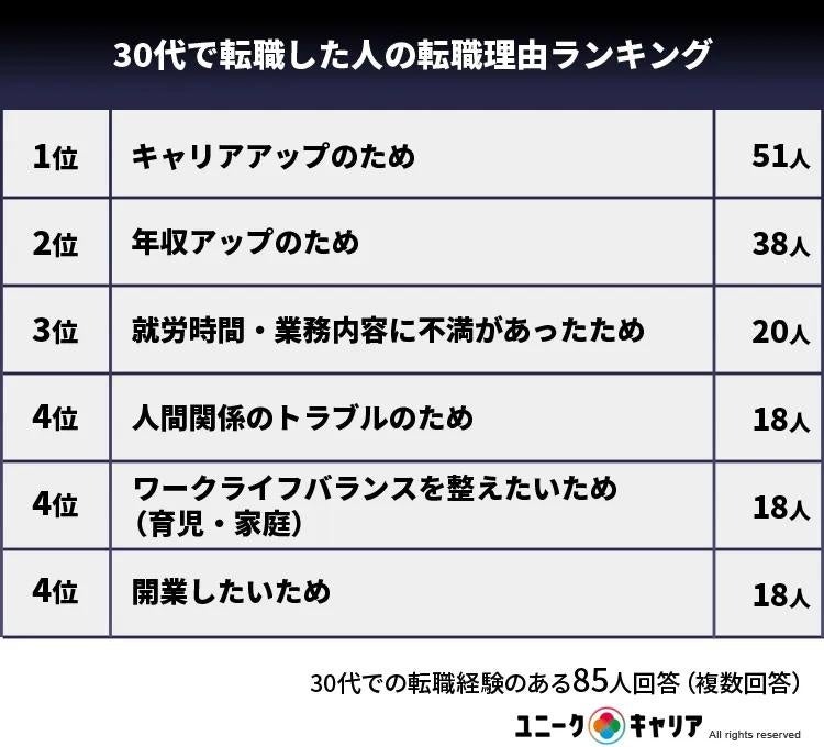 〈30代で転職した人の転職理由ランキング〉