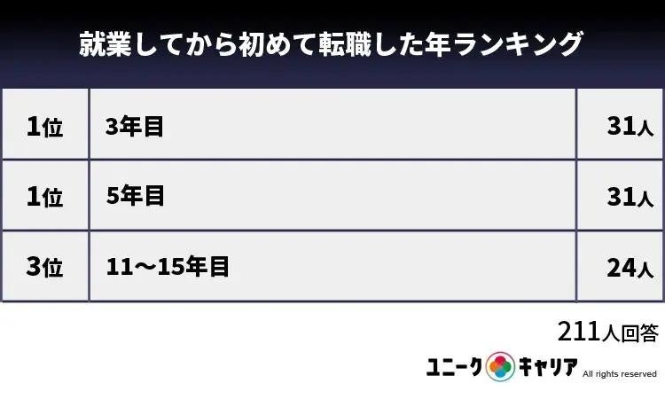 就業してから初めて転職した年ランキング