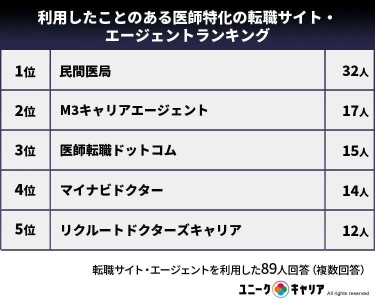 32人で1位となった民間医局は医師の紹介を専門にしている転職総合サービスだ。