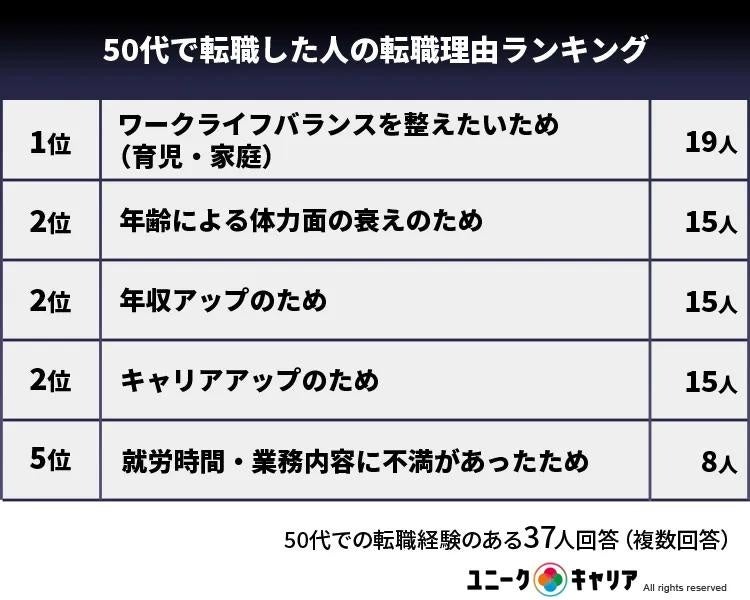 〈 50代で転職した人の転職理由ランキング〉