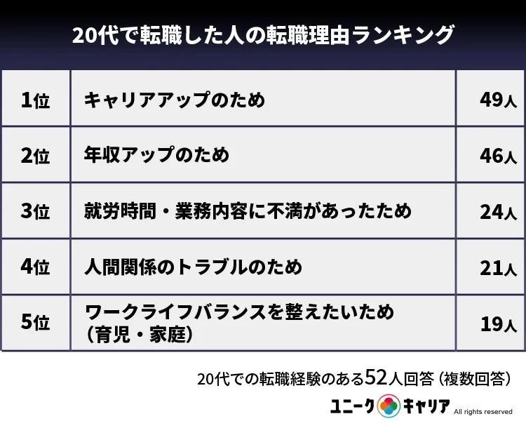 20代で転職した人の理由1位は「キャリアアップのため」だ。