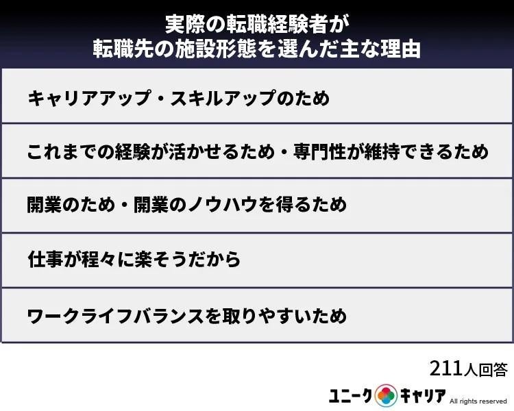 実際の転職経験者が転職先の施設形態を選んだ主な理由