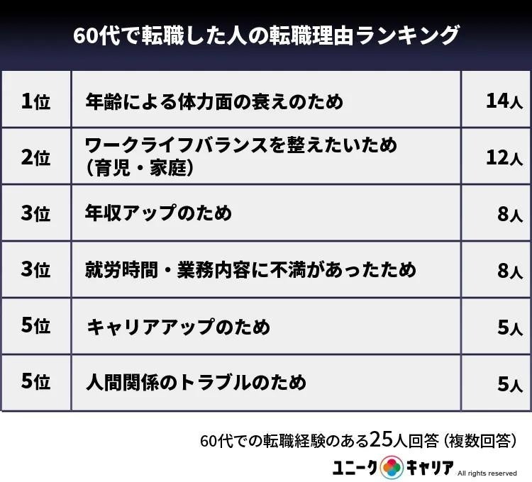 〈60代で転職した人の転職理由ランキング〉