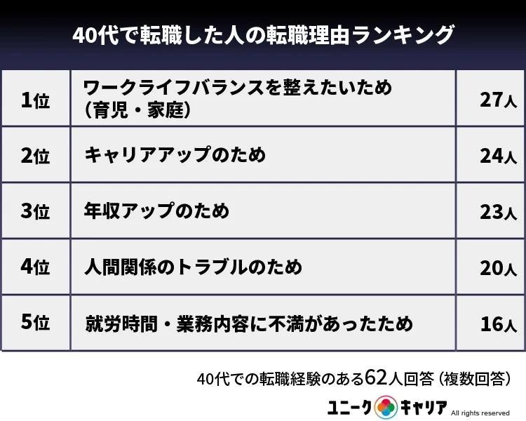 〈40代で転職した人の転職理由ランキング〉
