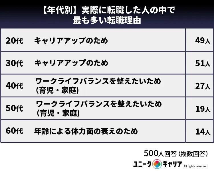実際に転職をした人の理由を年代別にランキングでまとめてみた。