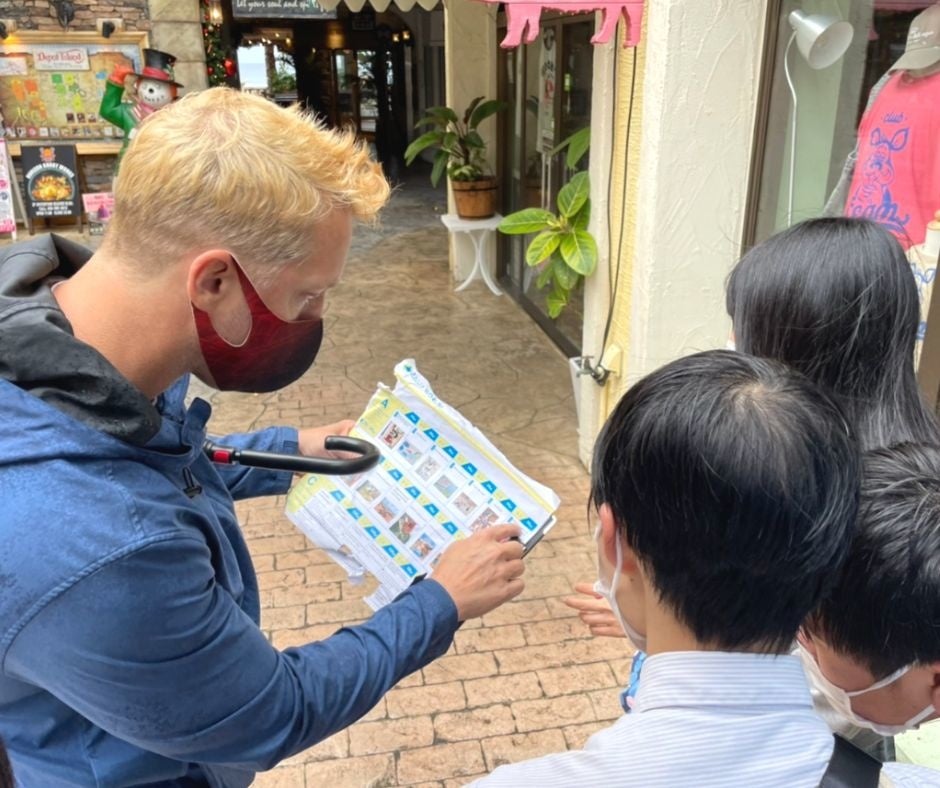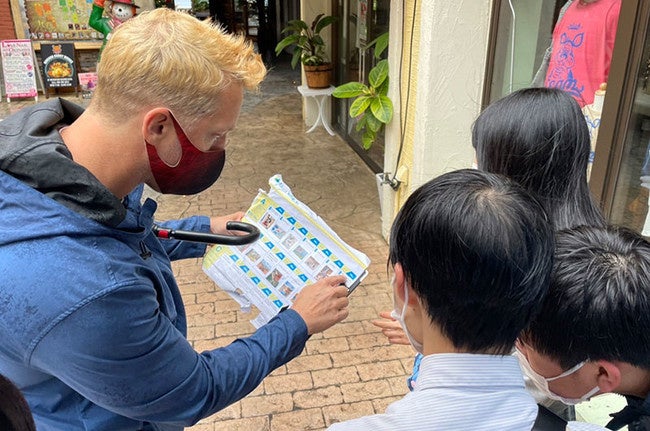 HelloWorldでは外国人と一緒に一つのチームとなり、英語での会話でミッションに取り組みながらまち歩きを楽しむ体験アクティビティを提供。沖縄で先行展開しており、修学旅行で訪れた学生や教員たちから好評をいただいています。