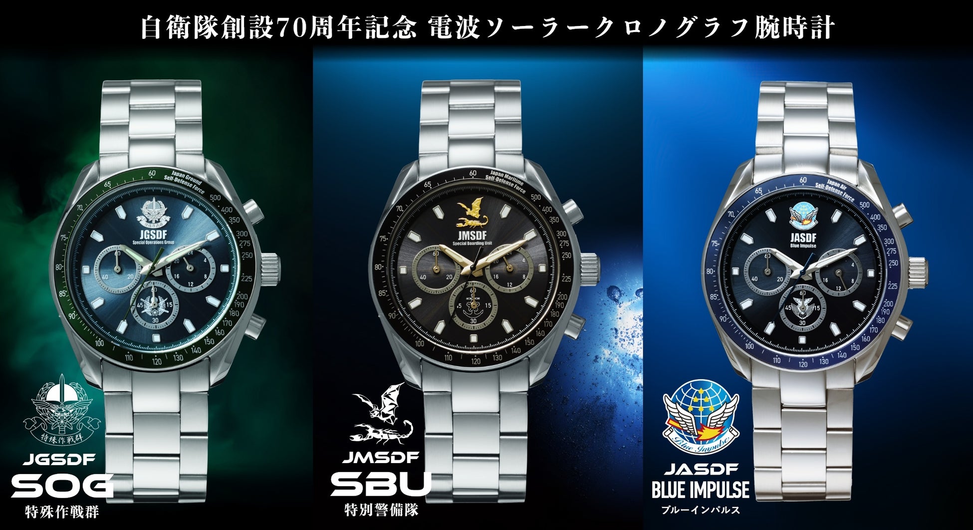 陸・海・空、それぞれの精鋭に捧ぐ「自衛隊創設70周年記念 電波ソーラークロノグラフ腕時計」発売