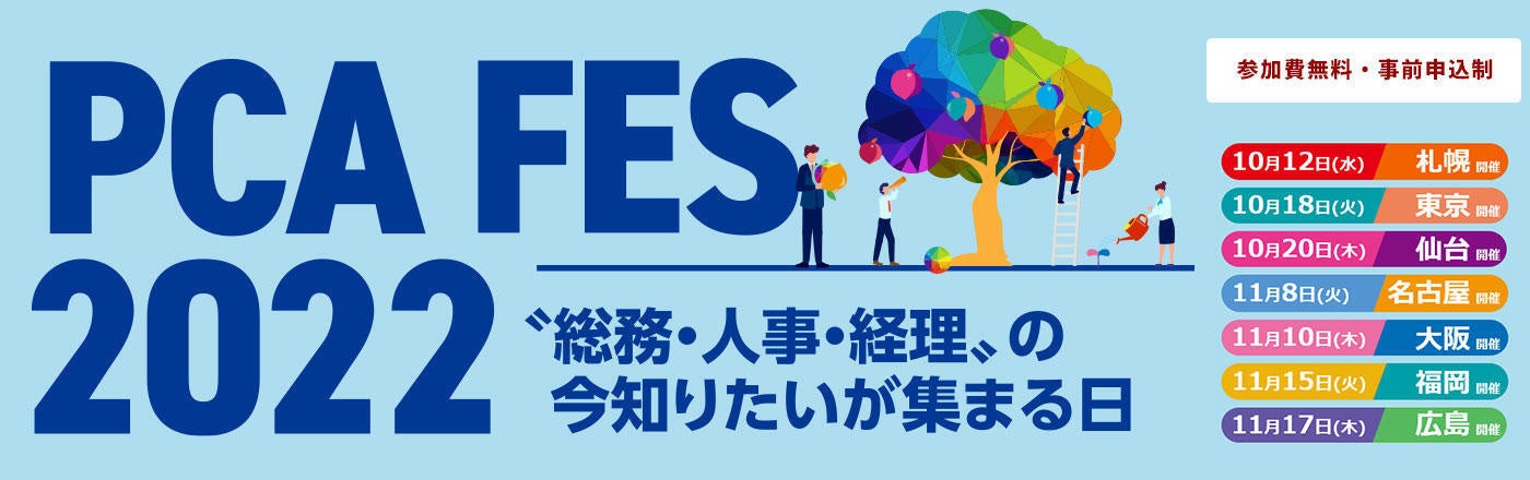 【PCA】"総務・人事・経理"の今知りたいが集まる日「PCAフェス2022」を10月12日~11月17日にかけて全国7都市でリアル開催
