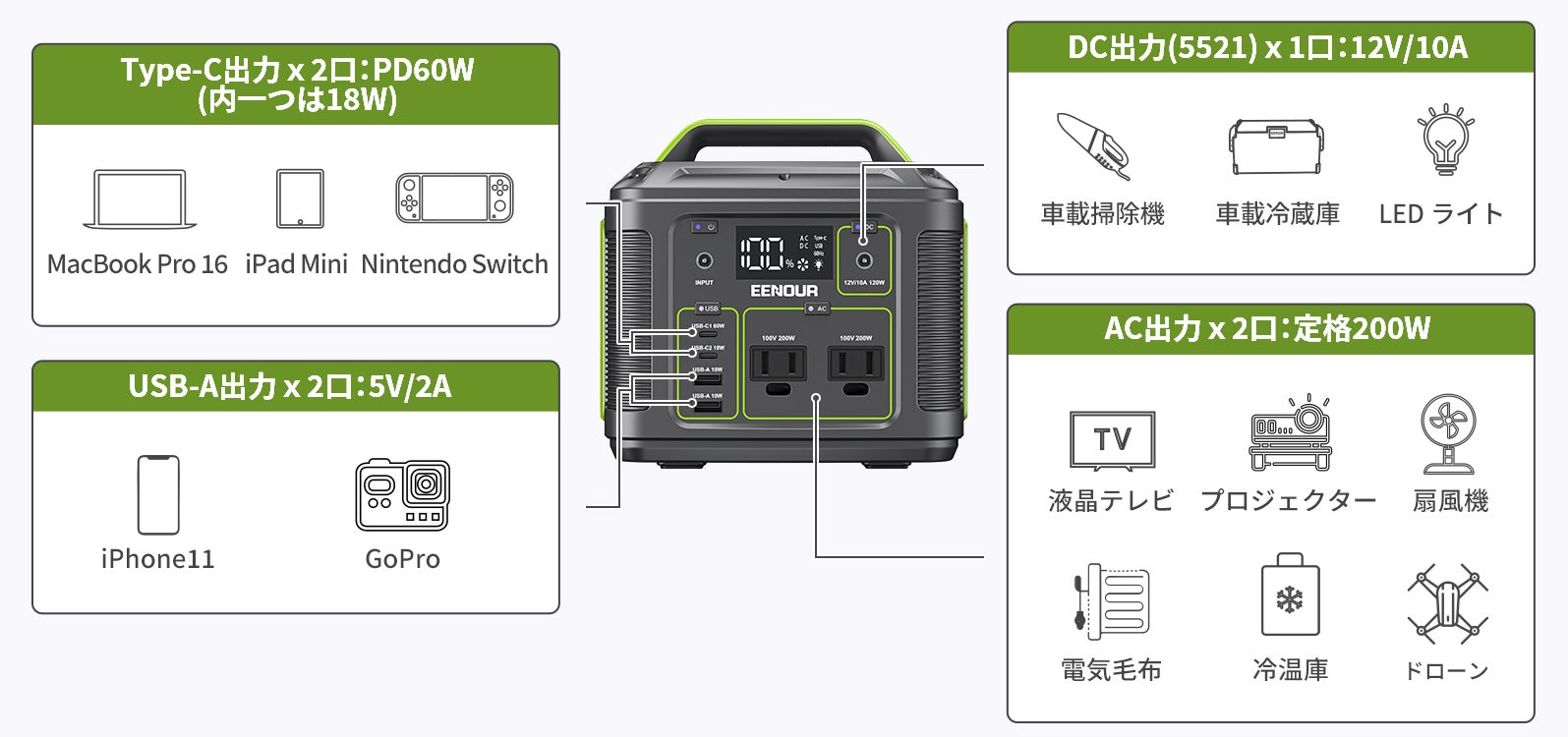 アウトドアでも自宅にいる時と変わらず電気製品を使うことができます。