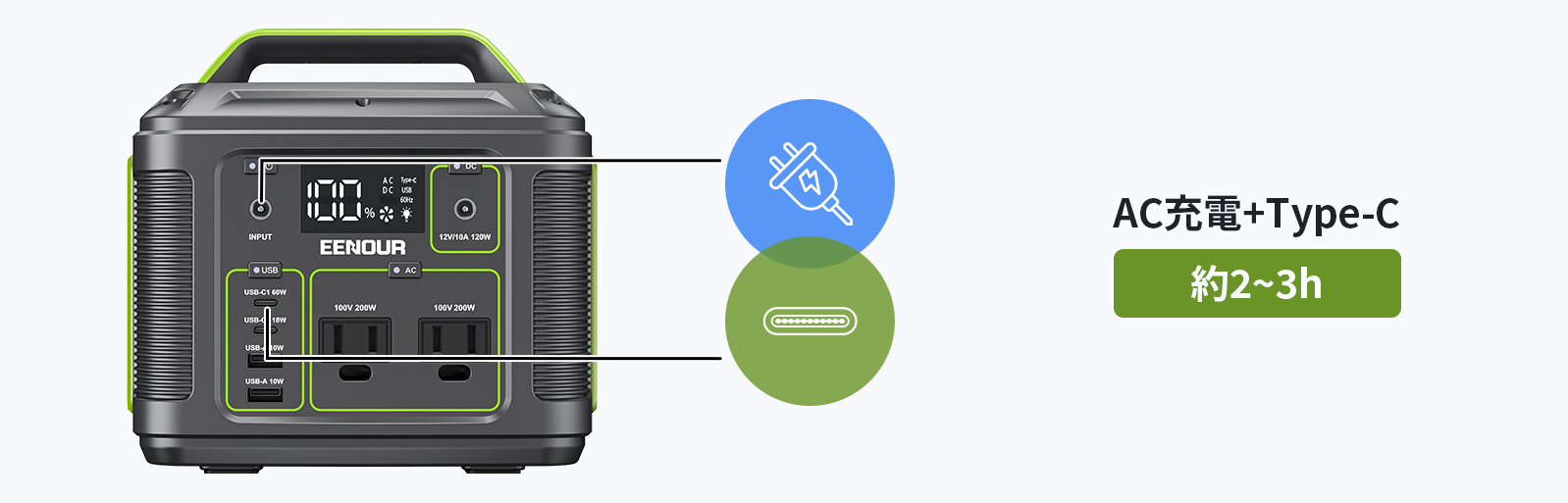Type-C入出力(1口):5V/2A 9V(12V 15V 20V)/3A(最大60W)