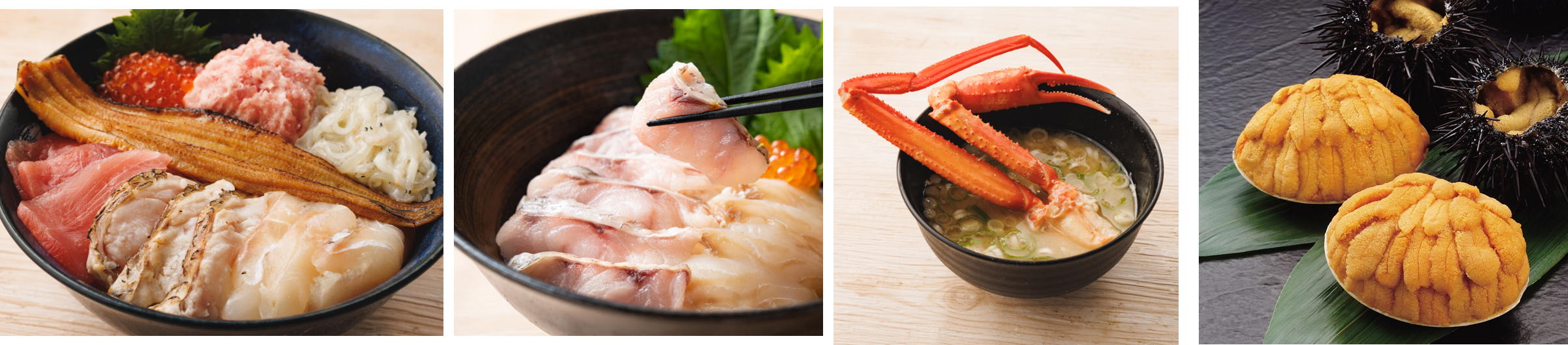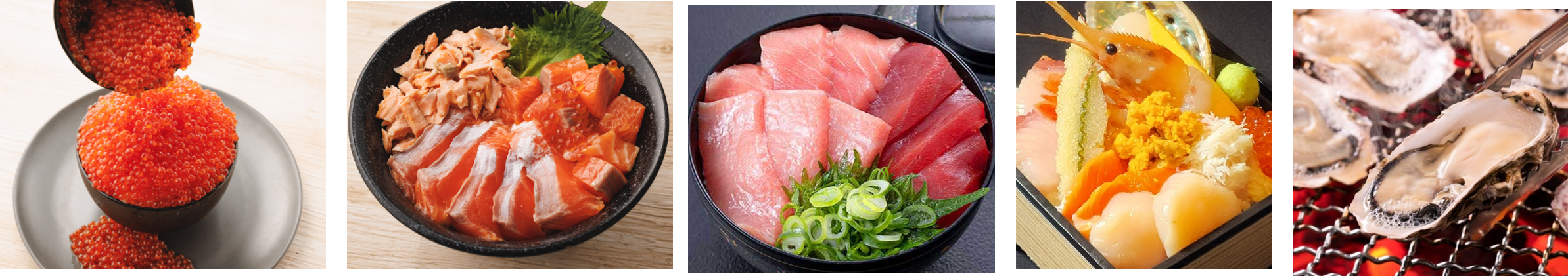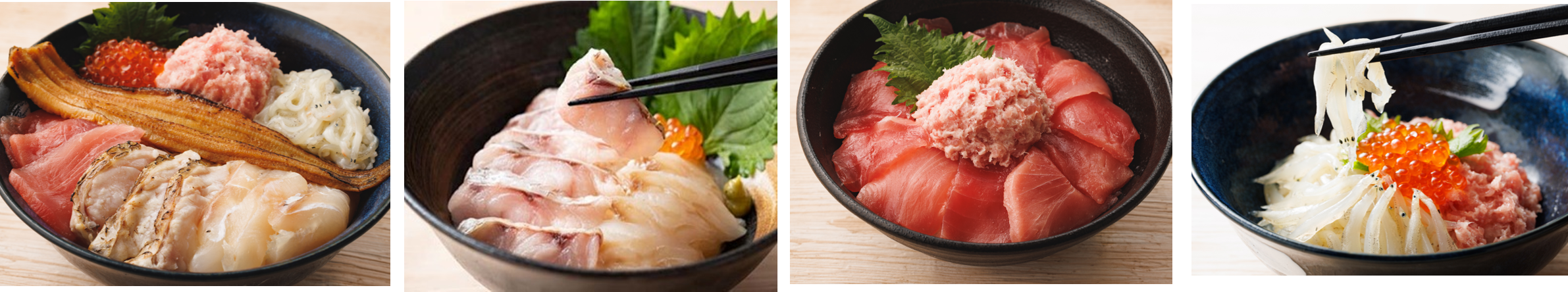 - 魚介グルメの王道!旬で新鮮な海鮮丼が勢ぞろい!