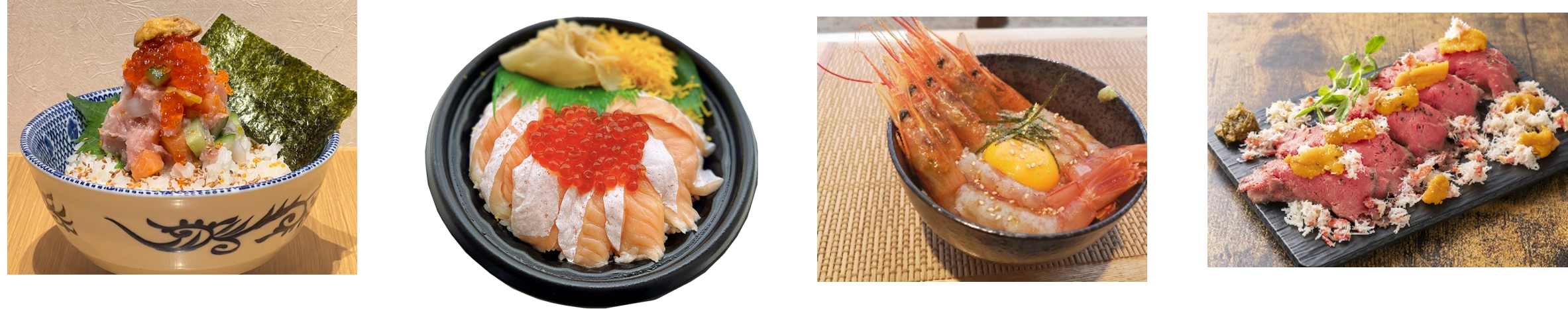 ウニ・イクラ・アワビ・ホタテ・カニ・アカシマエビ・ブリ・サーモン・子持ち昆布、北の恵み9種をこれでもか!と詰め込んだ自慢の丼ぶりです。