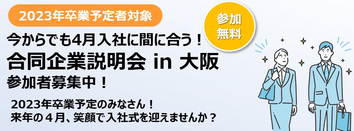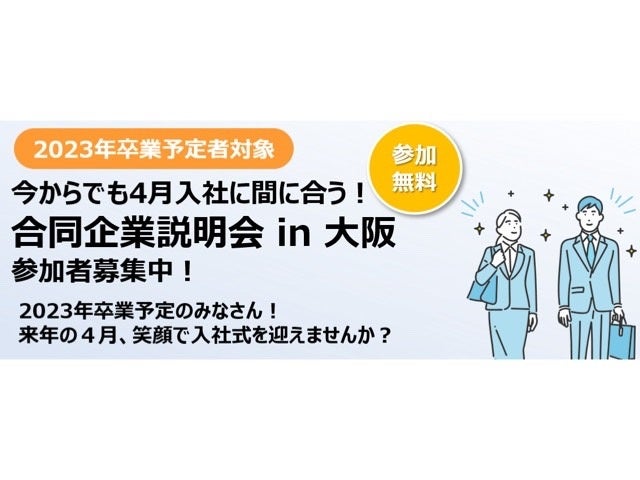 本イベントは、大阪府主催の合同説明会で、12月以降も就活を頑張る就活生と、23年度卒業生を積極的に採用したい大阪の企業27社が参加しました。