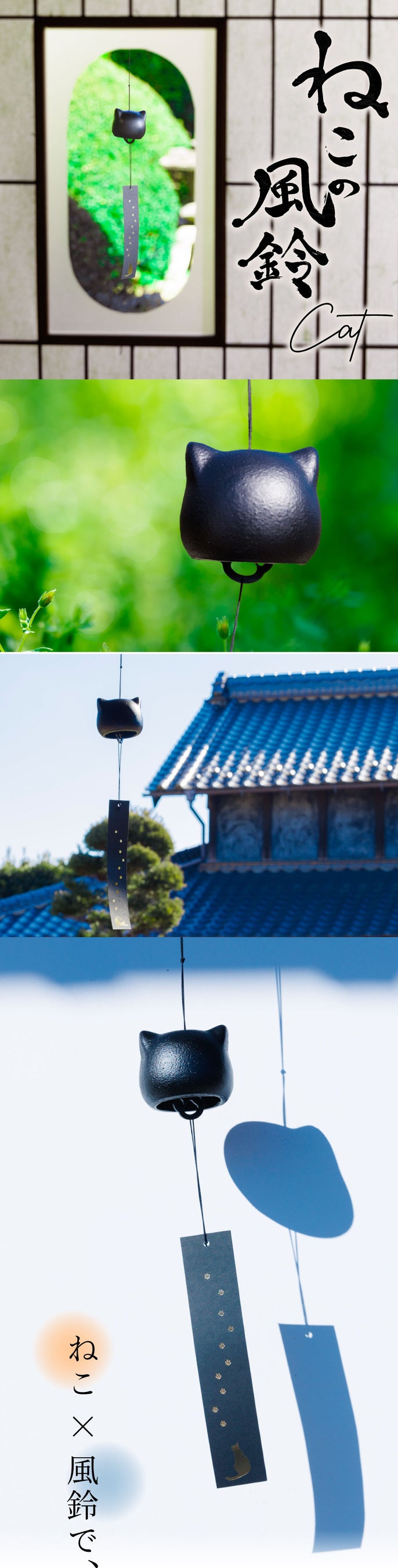 シンプルなデザインとどこから見ても猫!な姿が人気の『ねこの風鈴』です。人気雑誌「猫びより」にも掲載!