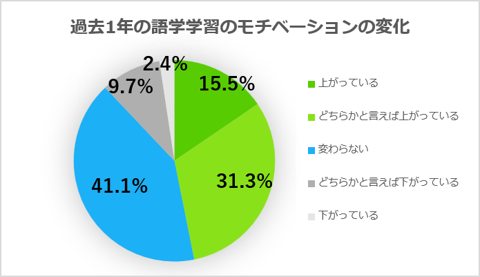 ◆この1年で半数近くの人が語学へのモチベーションが向上しているという結果に
