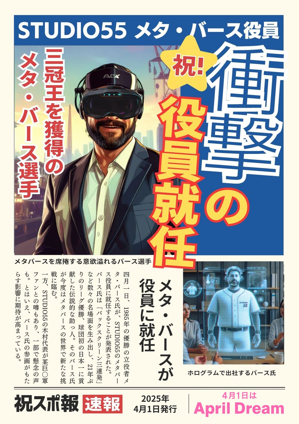 【速報!】昭和60年に三冠王を獲得したメタ・バース選手がSTUDIO55の役員に就任!