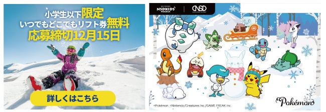 ■NSDキッズプログラムは12スキー場どこでも滑れるリフトシーズン券を枚数限定無料で提供!