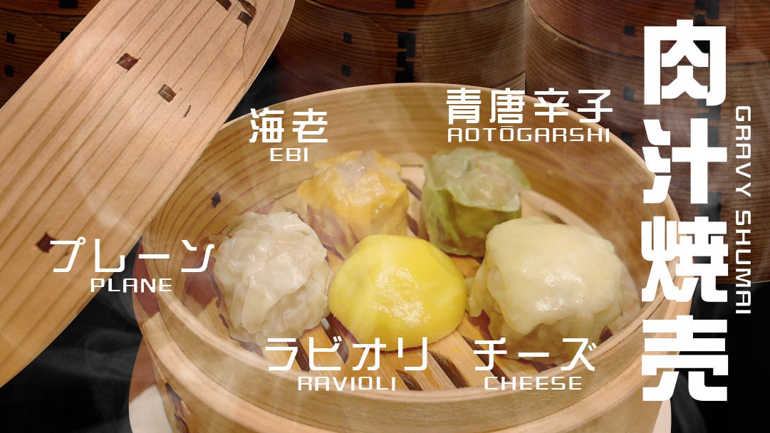 こちらは全国の焼売を食べ歩き独自に開発した変わり種のオリジナル焼売をご用意しています。肉汁たっぷりでジューシーなだけでなく、青唐辛子味、海老味、チーズ味や、ラビオリ風の焼売など、味も見た目も楽しいここでしか食べられない焼売となっています。