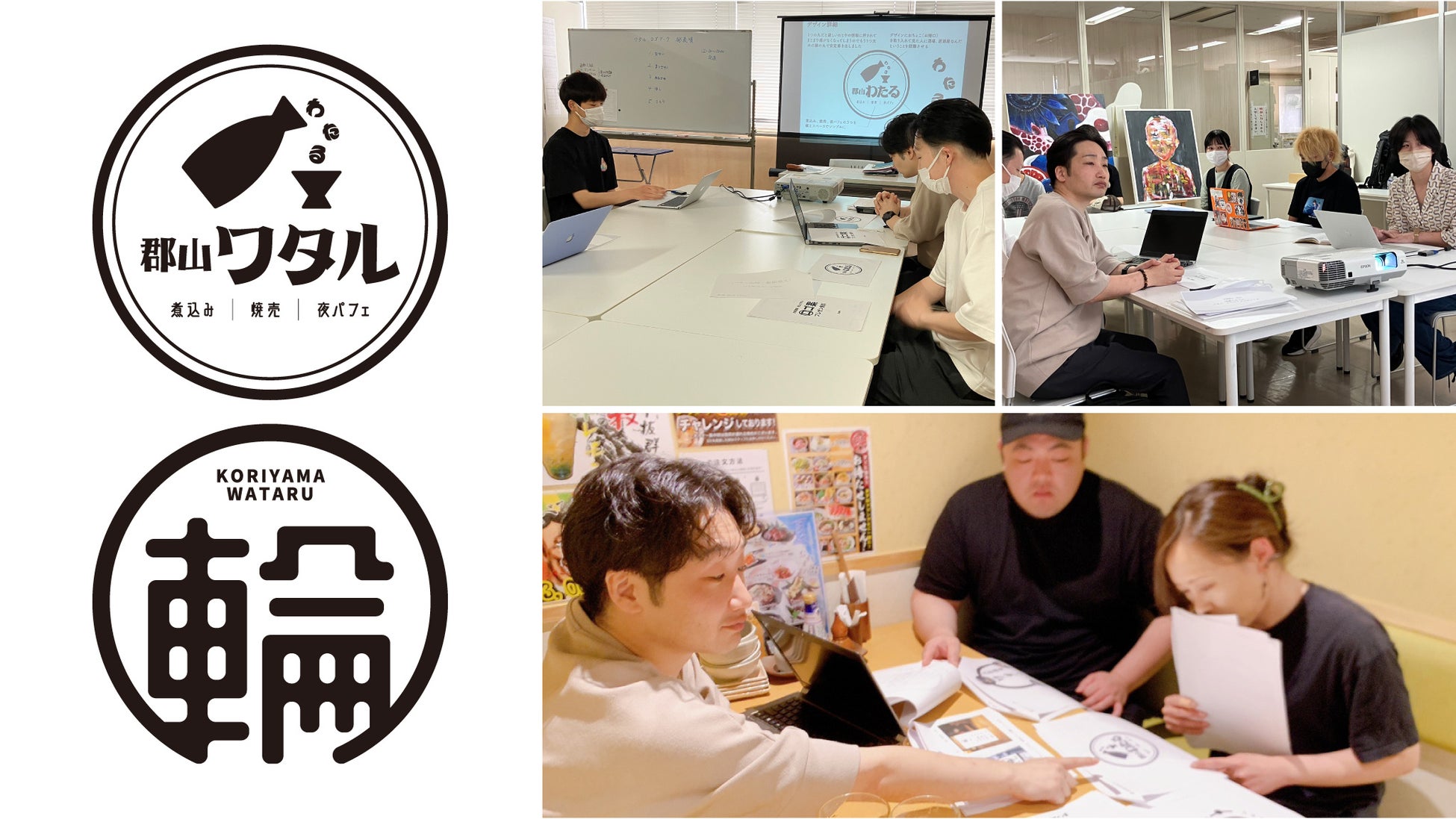 郡山の人々の輪をつなぐ企画第一弾として、郡山にある「国際アート&デザイン大学校」の学生とコラボして、店舗のロゴ制作に協力いただきました。5名の学生にワタルのロゴ制作をお願いし、コンペの結果2名のロゴを採用して実際の店舗で使用しています。オープン後には採用された学生の方や協力いただいた学生の方の挑戦を称える表彰式の開催も予定しています。