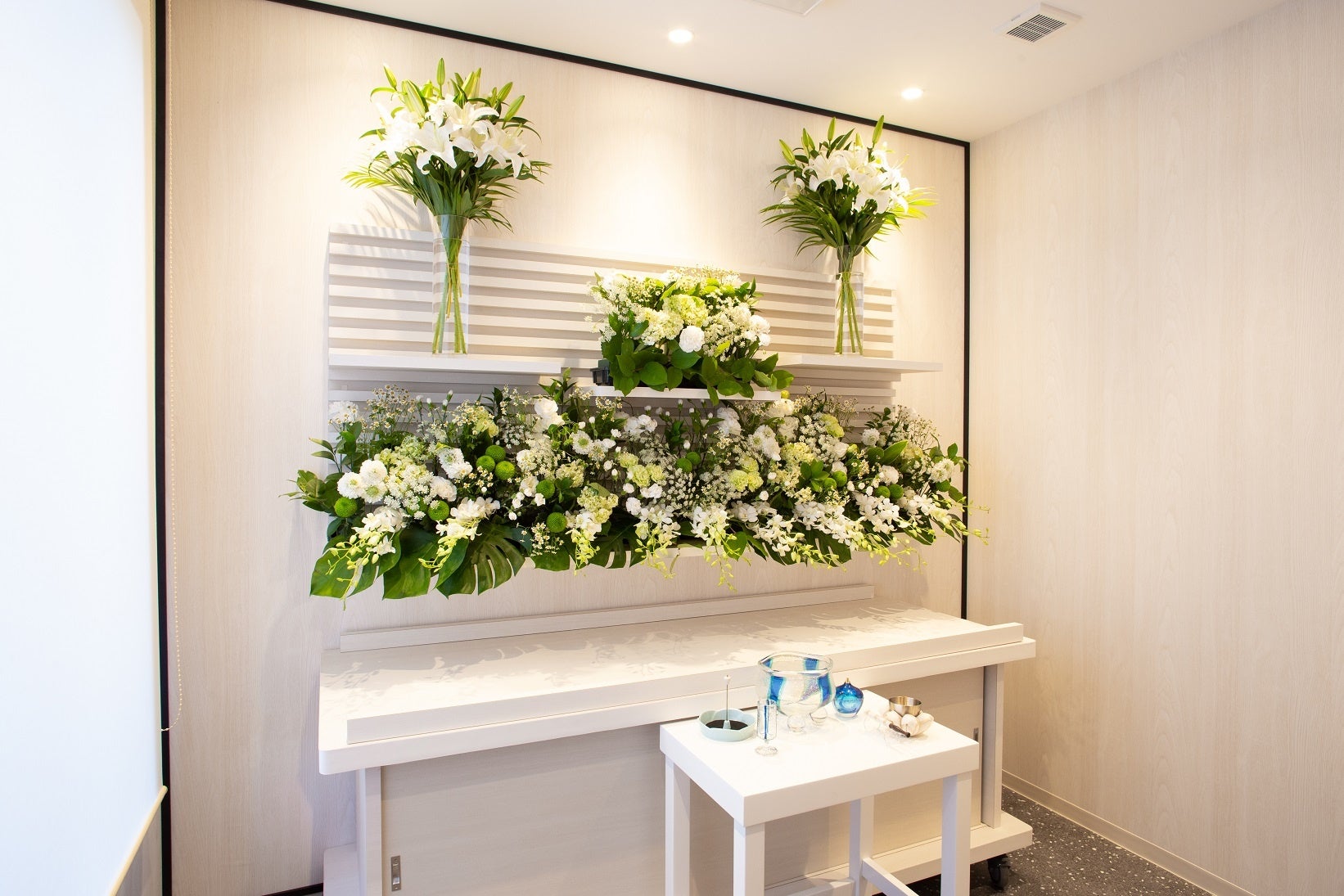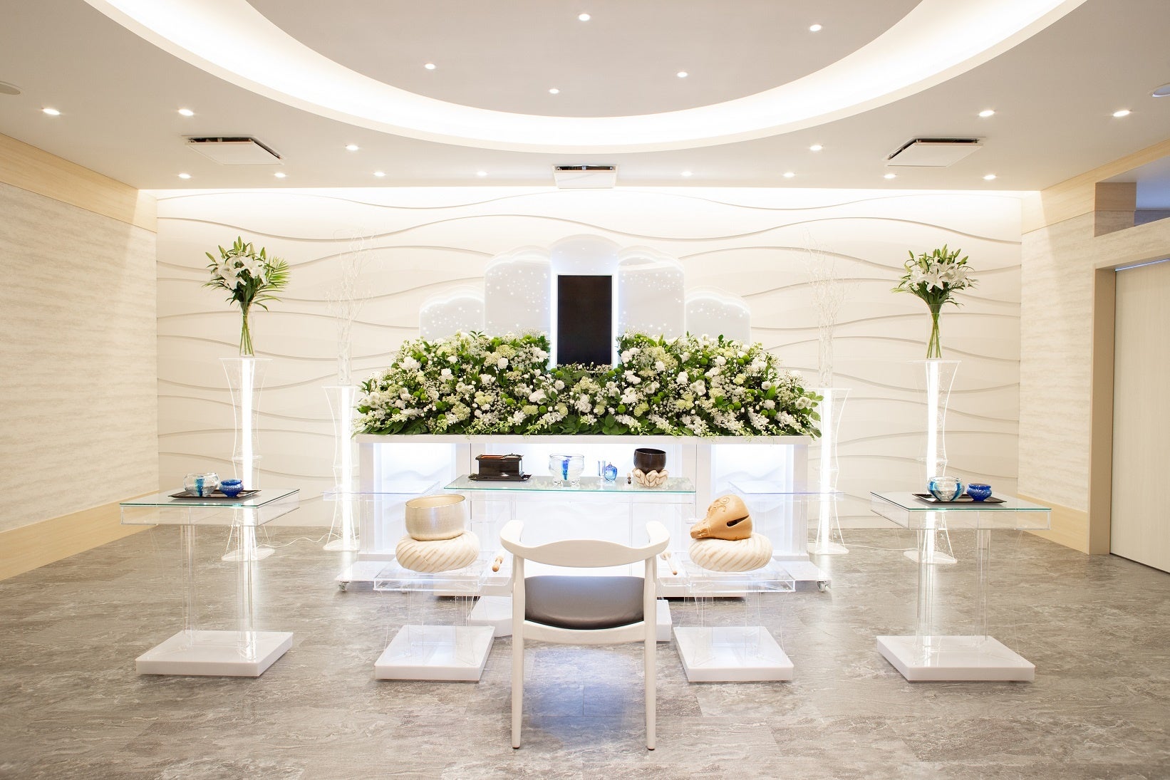 コンセプトの「故人様を宙(そら)、すなわち天国へあたたかく見送るための家」が反映された『ソライエ小川町』は、内装が白を基調とした洋風のモダンスタイル。ホールとダイニングが続いており、その横に控室を配置しておりますので、利便性に優れており、まるで自宅にいるようなアットホームな感覚で、故人様とご家族での大切なひとときをお過ごしいただけます。