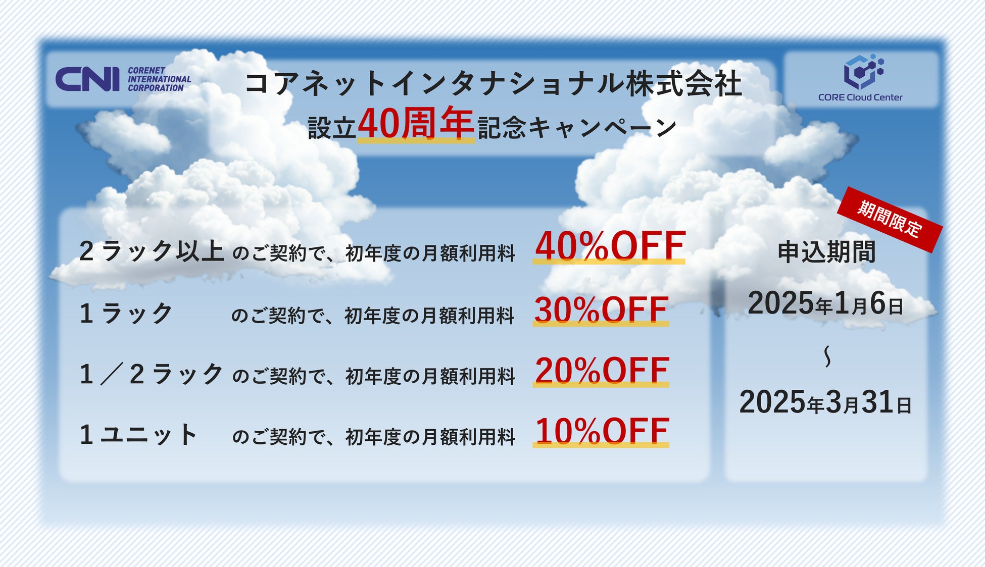 コアクラウドセンター サーバーお預かり応援キャンペーン