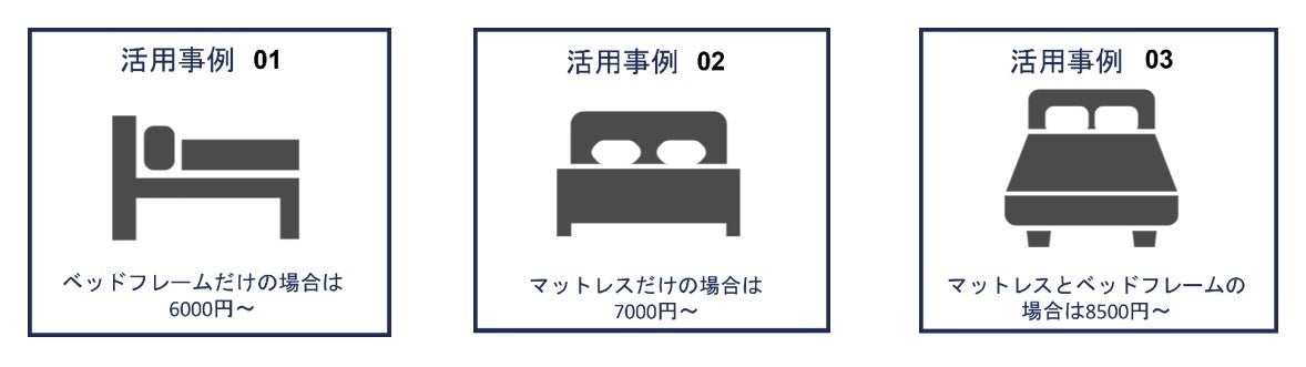 なお、費用はベッドフレームだけの場合は6,000円~、マットレスだけの場合は7,000円~、マットレスとフレームの場合は8,500円~となっております。
