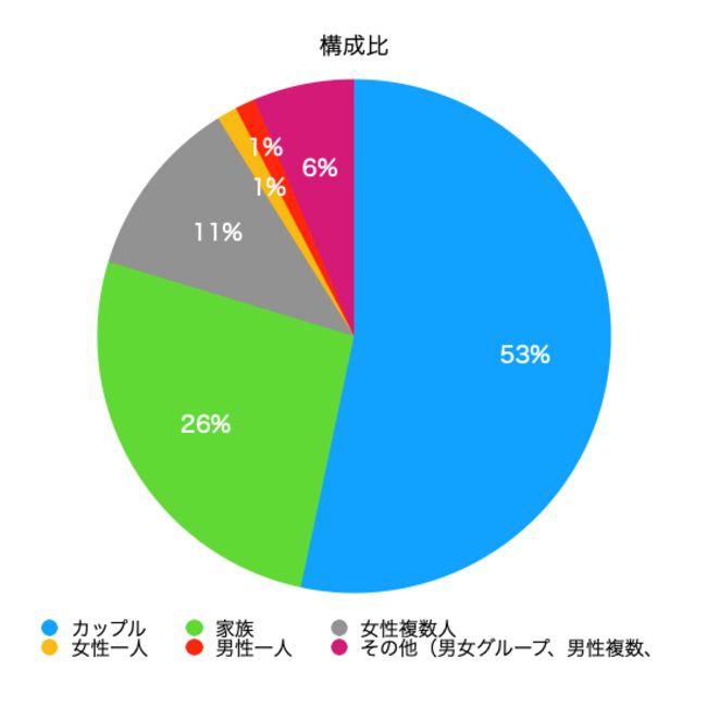 「カップル(青)」53% 「家族(緑)」26%